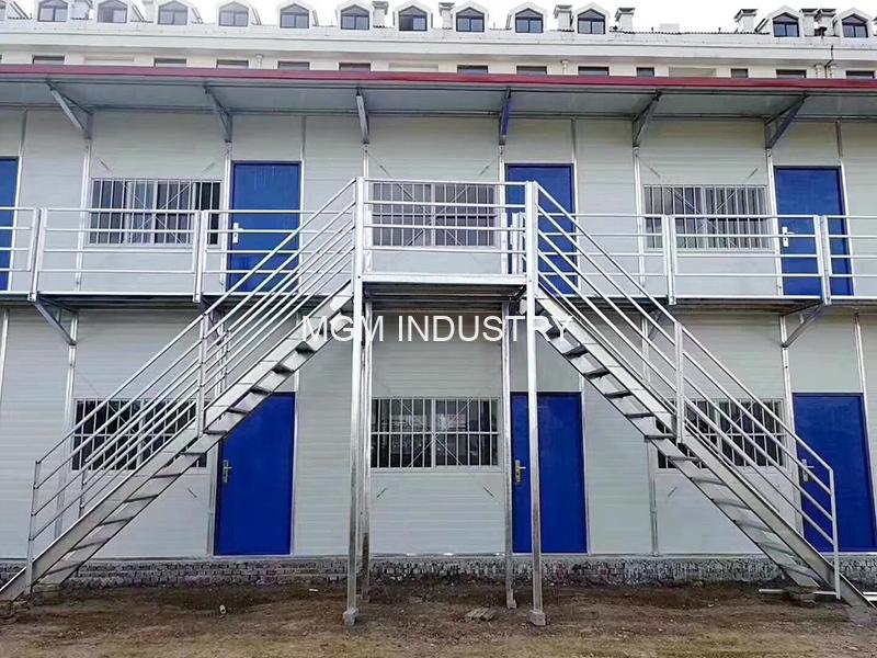 This is a kind of prefabricated house, which can be made into 1-3 stories, each room has a standard module with one door and two Windows, and each room of prefab house temporary dormitory can accommodate 2-4 people.The house is anchored directly to the concrete floor.The Columns, beams, purlins and roofs are jointed by bolts, and wall panels are spliced.A house can be put together by 4 workers in about 1 day.Greatly save labor and time cost.